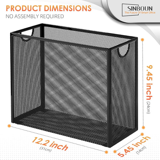 Sinboun Hanging File Organizer Letter-Size File Holder Filing Box Includes 5 Hanging Folders - Metal Mesh Magazine Letter Storage Cabinets File Cart for Office Home School, No Assembly Required