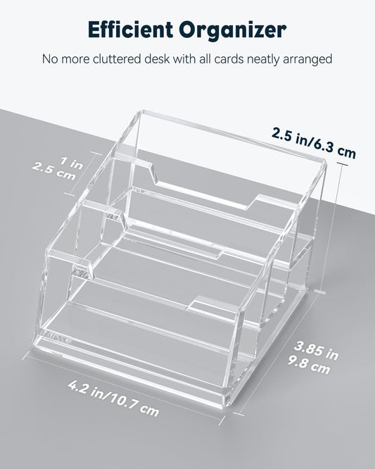 Acrylic Business Card Holder for Desk, Clear Plastic Business Card Stand with 3 Tier, Multiple Business Display Holder for Exhibition, Office and Hotel, 2 Pack