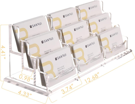 SANRUI Clear Horizontal Business Card Holder Stand for Desk, Acrylic Desktop Display Name Cards Holders Organizer Storage Rack,for Exhibition, Home , Office ,3 Tier 9 Pocket , 540 Card Capacity