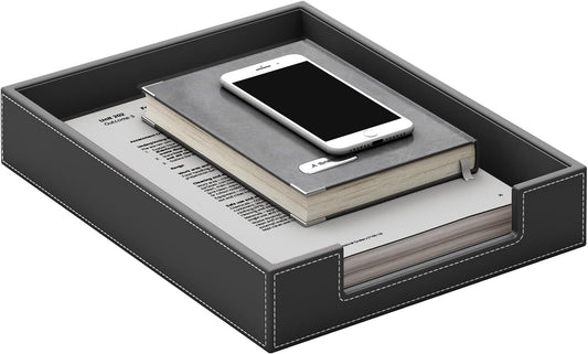 PU Leather Letter Tray - Load Documents Trays Front for Office Desktop Organizer - Desk Magazine, File, A4 Paper Holder - Paper Document File Holder (Black, A4-Tray)