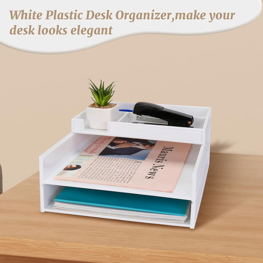 White Paper Tray Letter Size Tray Desk Organizer Holder A4 Plastic Paper Storage Stackable Letter Tray Paper Holder File Organizer for Office Supplies School Home Desk Accessories (White)