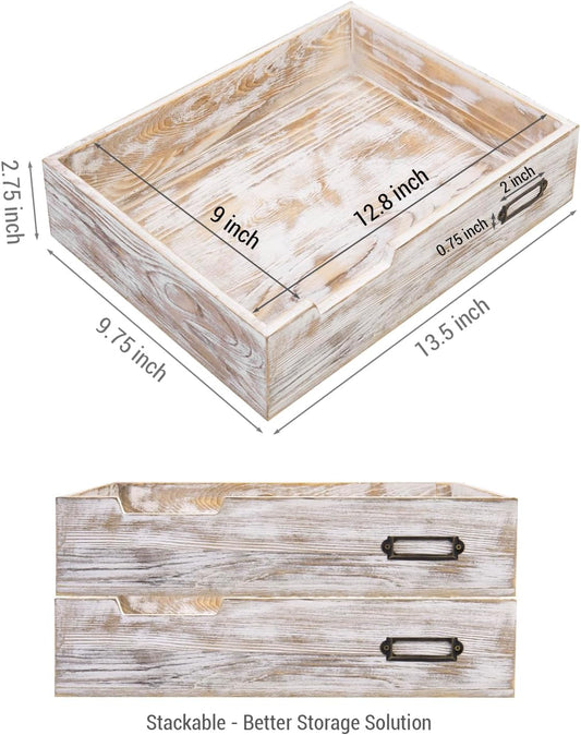 Set of 2 Ash Gray Wood Office Desktop Document Letter Paper Trays, Stackable Decorative Multipurpose File Organizer