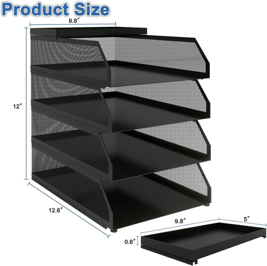 4 Tier Stackable Letter Tray, Metal Mesh File Storage Desktop Organizer for Home Office, Black