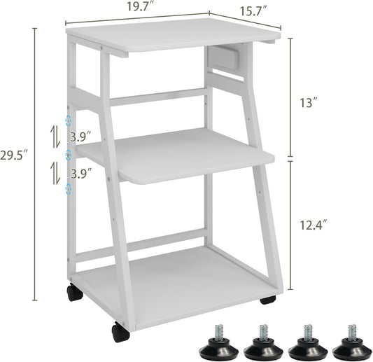 Natwind 19.7"x15.7" Printer Stand,3 Tier Printer Table with Charging Station, Rolling Cart with Adjustable Storage Shelf for Home Office Organization, Stand for Heat Press,3D Printer (White)