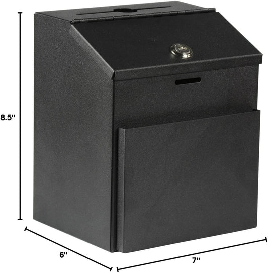 Suggestion Box with lock and keys Lock Metal Wall Mounted Ballot Box, Steel Donation and Collection Drop Box with wide Slot, 8.5H x 6W x 7.3L Inch office comment box with front wide pocket