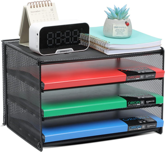 Samstar Paper Letter Tray, 3 Tier Desk File Organizer Paper Sorter Letter Shelf Rack, Mesh Made,Black ...