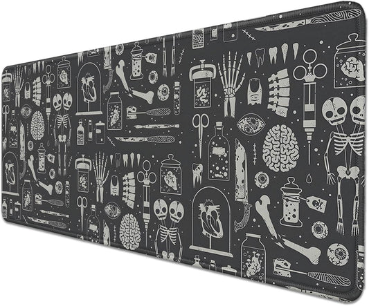 Human Skeleton Medical Mouse Pad,Large X Ray Mousepad Desk Pad with Stitched Edges,Non-Slip Waterproof Rubber Base Mouse Mat for Office Computer Keyboard Laptop Home(27.5x11.8 in)