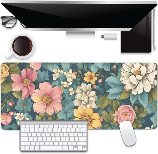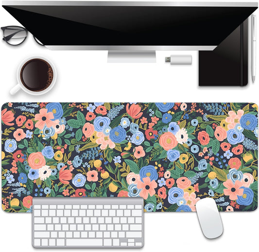 Garden Party Flowers Desk Pad Mouse Pad,Large Floral Mouse Mat with Stitched Edges,Non-Slip Rubber Base Mousepad for Office PC Keyboard Laptop and Home Work Desk Mat(27.5X11.8 in)