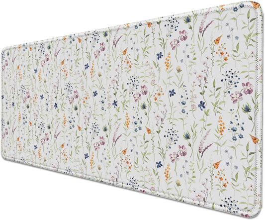Wildflowers Flowers Mouse Pad,Large White Floral Mousepad Desk Pad with Stitched Edges,Non-Slip Waterproof Rubber Base Mouse Mat for Office Computer Keyboard Laptop Home(27.5x11.8 in)
