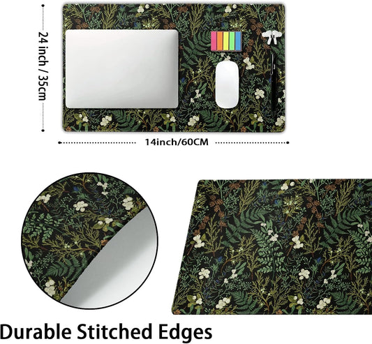 Black Aesthetic Vintage Botanical Gaming Mouse Pad Large XL Cute Forest Green Plant Nature Floral Extended Large Big Mousepad Non-Slip Stitched Edge Long Mat for Desk Computer,24x14 Inch,60x35 CM