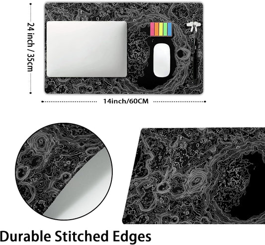 Black Whtie Topographic Gaming Mouse Pad XL Topo Moon Relief Map Extended Large Mat Mousepad Desk Pad Non-Slip Rubber Base Stitched Edge Long Keyboard Playmat for Desk Computer,24x14 Inch
