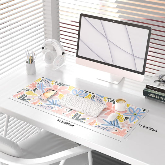 QIYI Floral Large Mouse Pad, Cute Desk Mat for Desktop, Women Girls Desk Accessories Office Décor, PU Leather Waterproof Big Gaming Mousepad, Doodle Flowers Desk Pad Computer Mat, 31.5" x 11.8"