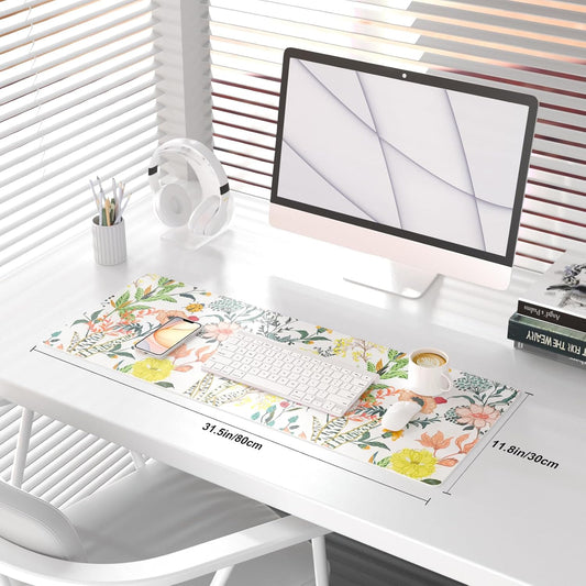 QIYI Large Mouse Pad for Desk, Cute Desk Mat for Desktop, Women Girls Office Décor Desk Accessories, PU Leather Waterproof Gaming Mousepad, Boho Botanical Desk Pad Computer Mat, 31.5" x 15.7"