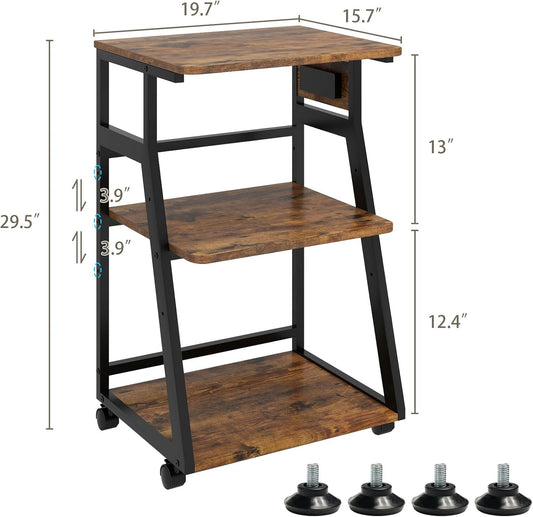 Natwind 19.7"x15.7" Printer Stand,3 Tier Printer Table with Charging Station, Rolling Cart with Adjustable Storage Shelf for Home Office Organization, Stand for Heat Press,3D Printer (Retro)