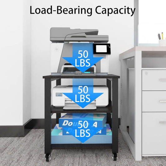 Natwind 3-Tier Laser Printer Cart,19.7''x19.7''x22.6'' Large Machine Stand,Heavy Duty Rolling Table with Storage,Floor-Standing Rack on Wheels,Paper File Organizer Shelf for Home Office (Black)