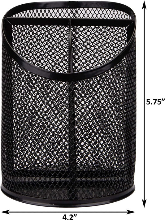 Nicunom 4 Pack Pen Holder Mesh Pencil Holder Round Pen Cup for Desk, 3 Compartments Desktop Pencil Organizer for Office Home School, Black