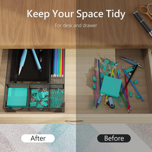 Desk Drawer Organizer, Small Metal Mesh Drawer Organizer Tray, Office Pencil Drawer Organizer Accessories for Desktop, Bathroom, Kitchen, Makeup, Vanity