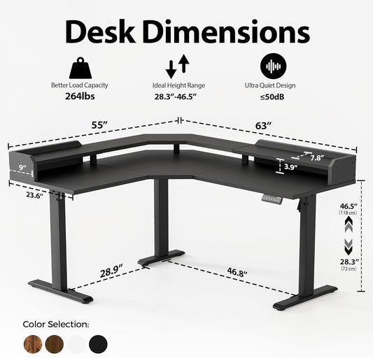 Agilestic L Shaped Standing Desk, Adjustable Height Corner Gaming Desk with Shelf, Sit Stand Up Desk, 63 x 55 Inch Home Office Computer Table, Black