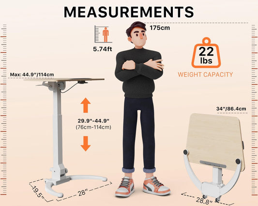 JOY worker Foldable Mobile Standing Desk, Pneumatic Height Adjustable Sit Stand Desk, 90° Tiltable Rolling Laptop Desk, Portable Cart with Wheels Non-Slip Mat for Home Office, Holds Up to 22lbs