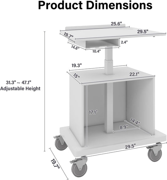 Rolling Laptop Desk Adjustable Height(29.5”- 43.7”),Mobile Workstation Cart with 31.5" x 22.1"Desktop, Standing Desk Mobile Portable PC Table for Home,Office or Classroom in Black