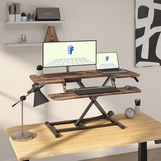 FLEXISPOT Height Adjustable Standing Desk Converter 42" Sit-to-Stand Desk Riser with Wide Keyboard Tray Workstation for Home and Office, Rustic Color (Rustic Brown, 42")