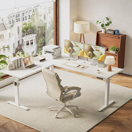 Agilestic Triple Motors 73" x 60" L Shaped Standing Desk, Electric Standing Desk Adjustable Height, Extra Large Desktop Corner Table for Home Office, Gaming Workstation, Splice Board, White