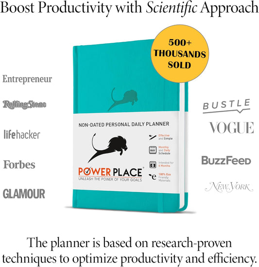 Daily Planner, Calendar and Gratitude Journal to Improve Time-Management, Productivity & Happiness | Vegan Leather Hardcover Organizer with Blank Dates, Undated 6 Months 24 Hour Agenda