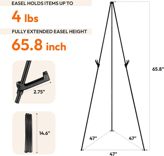 Easel Stand for Sign, Hemndic 66" Easels Stand for Painting Heavy Duty, Portable Travel Easel for Display (4 Pack)