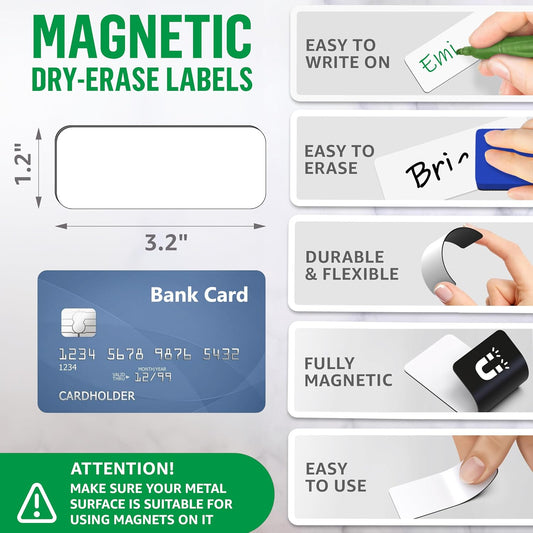 100 Pack Dry Erase Magnetic Labels 3.2x1.2 in - Magnetic Name Tags for Classroom Lockers School Bus - Classroom Magnets for Names Magnet Labels for Whiteboard Magnet Name Plates for Classrooms Blanked