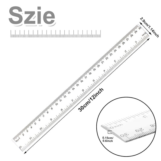30PCS Clear Ruler Plastic Rulers 12 Inch, with Inches and Metric for School Classroom, Home, or Office (Clear)