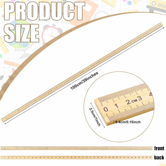 Treela 24 Pack 39 Inches Meter Stick Wood Ruler Economy Yard Stick Double Sided Heavy Duty Thick Meter for School Classroom Home Office Kids Clothing Measuring