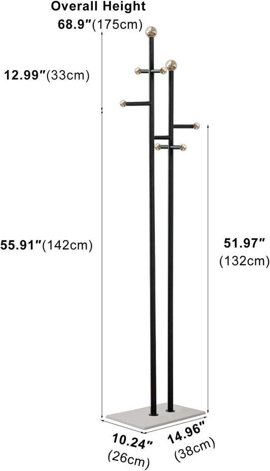 Free Standing Coat Rack with Marble Base & 8 Hooks Heavy Duty Clothes Rack for Entryway Bedroom Living Room Hotel 14.96 x 10.24 x 68.9 Inches (Black)