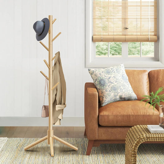 Solid Wood Coat Stand, Freestanding with Stable Base, 70" Birch Coat Tree Organizer for Home, Bedroom, Office, Hallway & Entryway with 11 Hooks