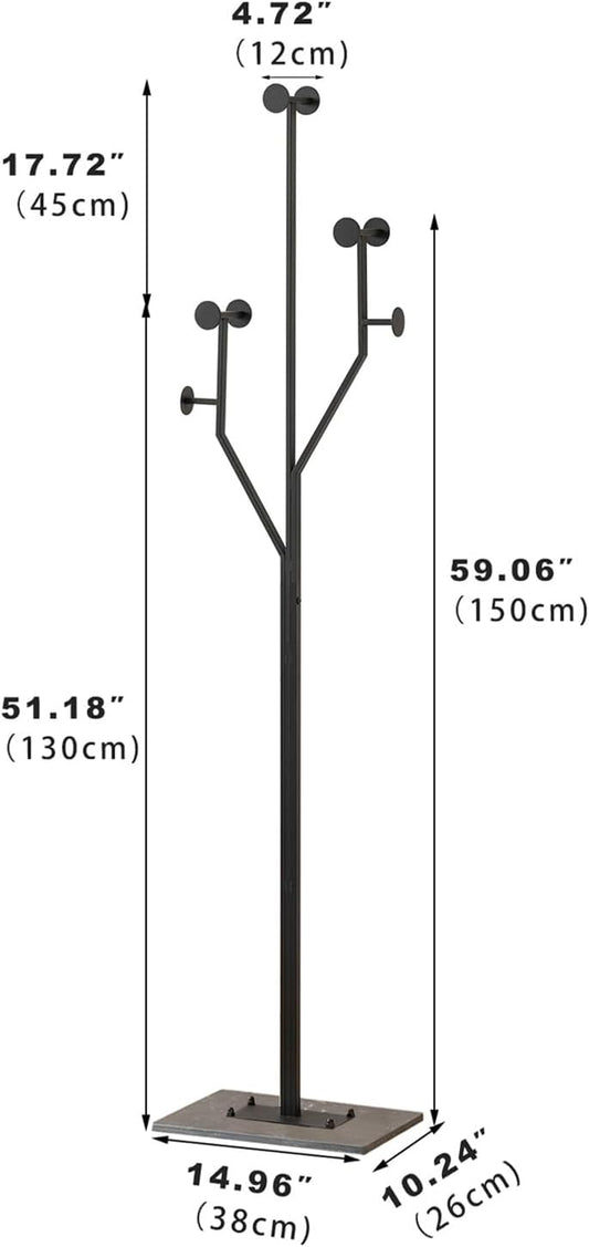Freestanding Coat Rack Tree-shaped Metal Coat Tree with Heavy Duty Marble Base Corner Clothing Rack for Bedroom Entryway Hallway 14.96 x 10.24 x 68.9 Inches (Black)