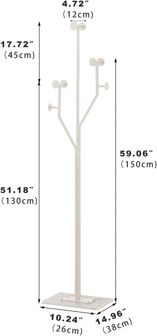 Heavy Duty Coat Rack Tree-shaped Metal Freestanding Coat Tree with Sturdy Marble Base Corner Coat Rack for Bedroom Entryway Hallway 14.96 x 10.24 x 68.9 Inches (White)