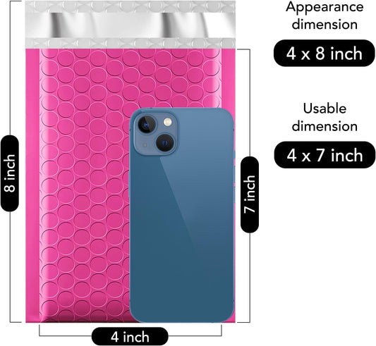 Fuxury Bubble Mailers 4x8" 100 Pack Pink Bubble Mailers Usable Size 4x7” Small Padded Envelopes Waterproof Mailing Envelopes Bubble Padded