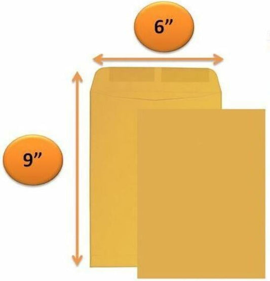 Catalog Envelopes (Open End), Brown Kraft, 28 Pound. 500 Per Pack. (Gummed, 6"x9")