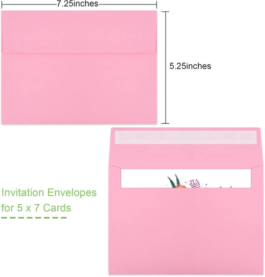 50 Pack 5x7 Envelopes - A7, Printable Invitation Envelopes - Self Seal for Weddings, Invitations, Photos, Greeting Cards, Mailing (Pink)