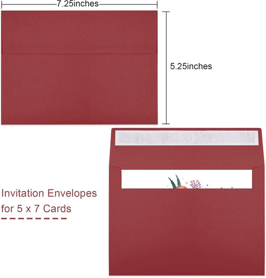 Joyberg 50 Packs Wine Red 5x7 Envelopes, Wine Red Envelopes 5x7, Wine Red Envelopes, Deep Red Color A7 Envelopes, Burgundy Envelopes 5x7, Invitations, Photos, Greeting Cards, Mailing (Wine red)