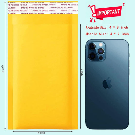 packbabol Kraft Bubble Mailers 4x8 Inch 100 Pcs,Small Self-Sealing Mail Shipping Bags,Yellow Padded Envelopes #000