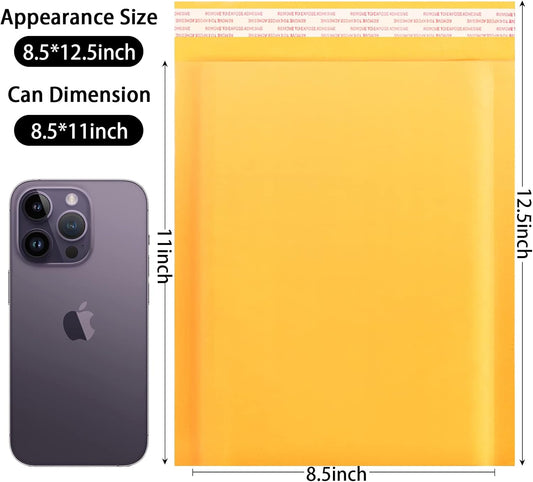Kraft Bubble Mailers 8.5×12' Inch 25 Pack Yellow shipping envelopes Self-Seal Padded Mailing Envelopes for Jewelry Makeup Supplies and Small Business Packaging