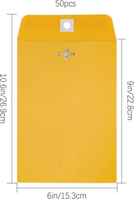 6” x 9” Clasp Envelopes with Gummed Seal Brown Kraft Catalog Envelopes Clasp Mailing Envelopes for Home, Office, Business 28 lb Kraft Paper,Pack of 50