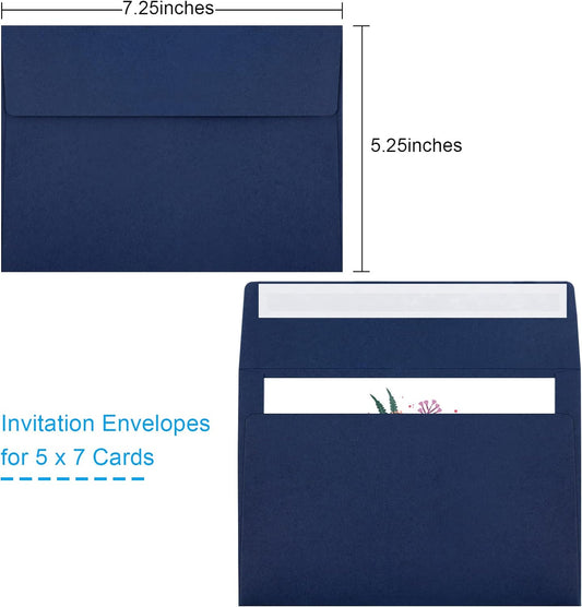 50 Pack 5x7 Envelopes - Self Seal for Invitations, Weddings, Photos & Greeting Cards (Navy Blue)