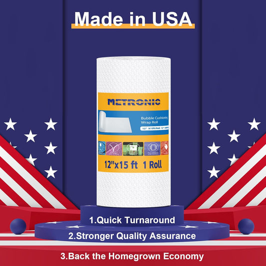 Metronic Bubble Cushioning Wrap 1 Pack 12 Inch x 15ft Total, Dense Bubble Packing Air Wrap Clear Bubble Packing Roll for Shipping and Moving Supplies