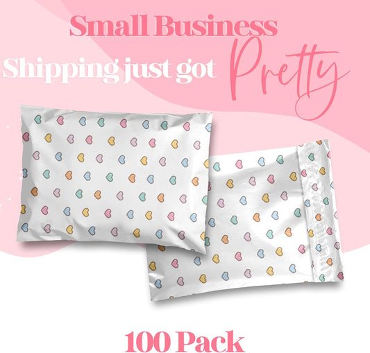 6x9 Designer Poly Mailer 100 Pack Heavy Duty Waterproof Self Seal Shipping Bags for Small Business Large Mailing Envelopes Bulk Tear Resistant Packaging Preppy Hearts