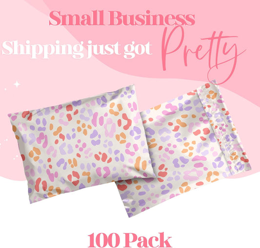 6x9 Designer Poly Mailer 100 Pack Heavy Duty Waterproof Self Seal Shipping Bags for Small Business Large Mailing Envelopes Bulk Tear Resistant Packaging Pink Orange Leopard