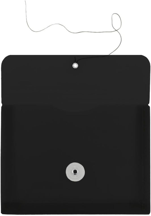 JAM PAPER Plastic Booklet Envelopes with Button & String Tie Closure - Index Size - 5 1/2 x 7 1/2 - Black - 3/pack