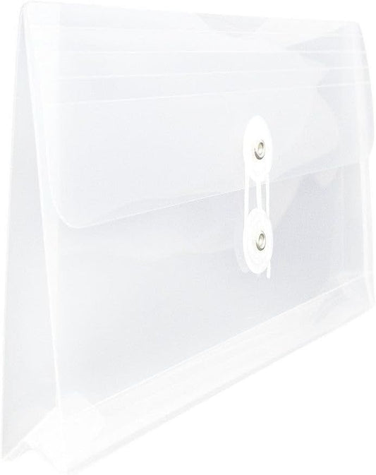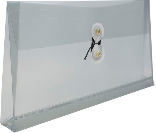 JAM PAPER Plastic Envelopes with Button & String Tie Closure - #10 Business Booklet - 5 1/4 x 10 - Clear - 3/pack