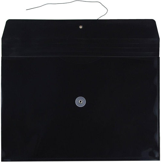 JAM PAPER Plastic Envelopes with Button & String Tie Closure - #10 Business Booklet - 5 1/4 x 10 - Black - 3/pack