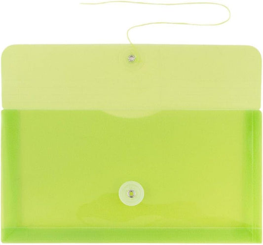 JAM PAPER Plastic Envelopes with Button & String Tie Closure - #10 Business Booklet - 5 1/4 x 10 - Lime Green - 3/pack